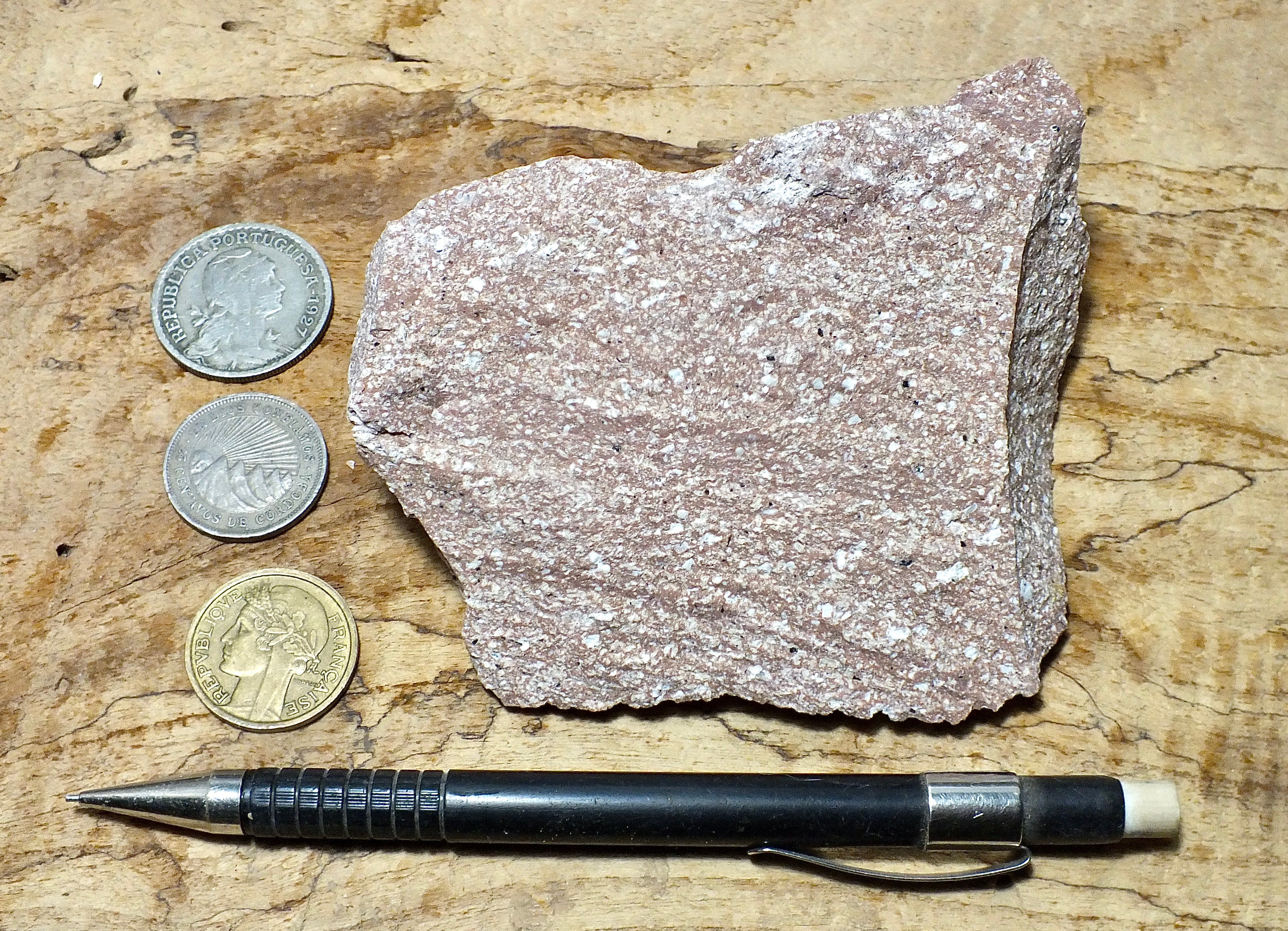 rhyolite porphyry - light pink rhyolite with small phenocrysts - hand specimen
