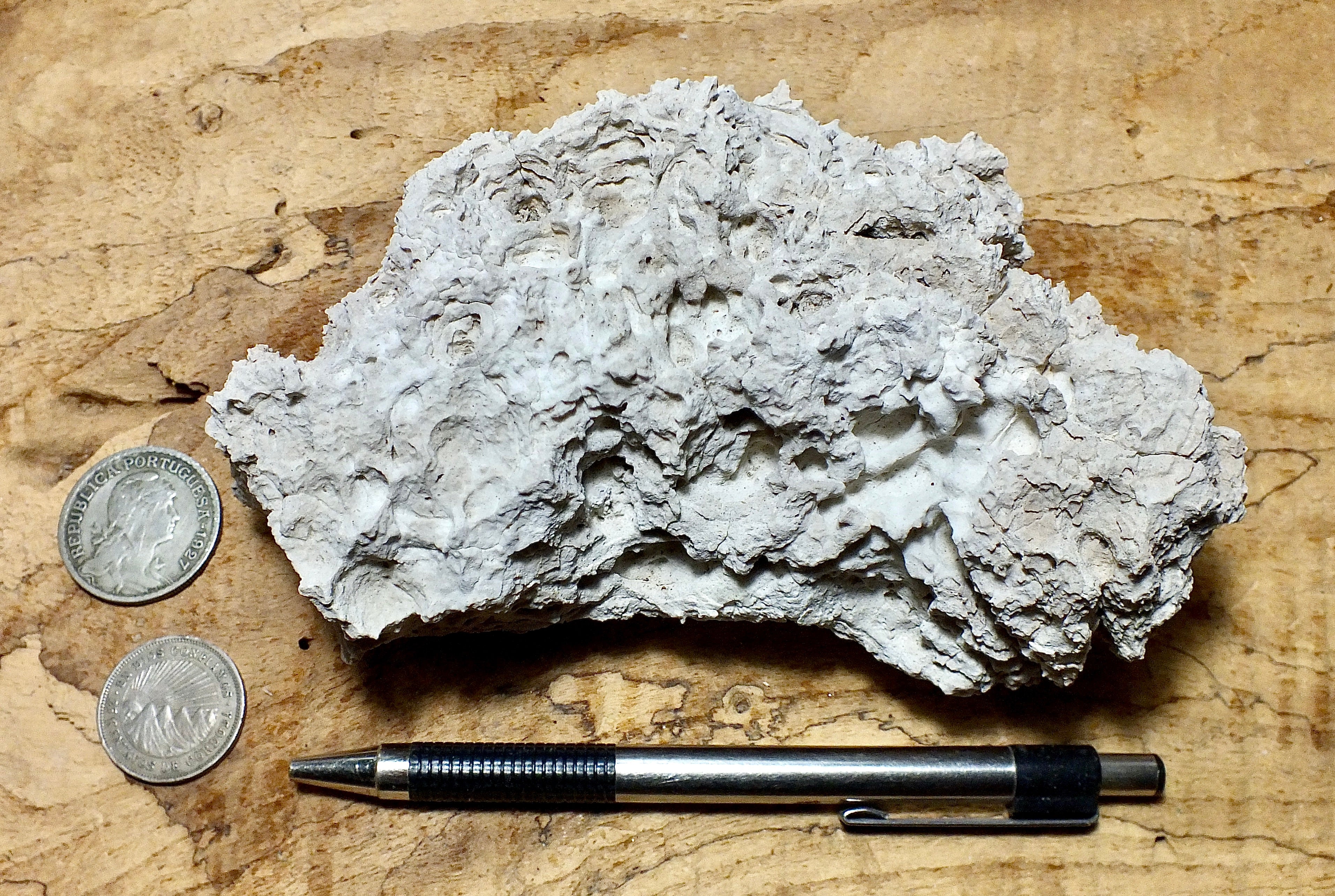 caliche - caliche formed in uplifted Pleistocene lake beds, uncovered and partly dissolved by acidic rain - hand/display specimen