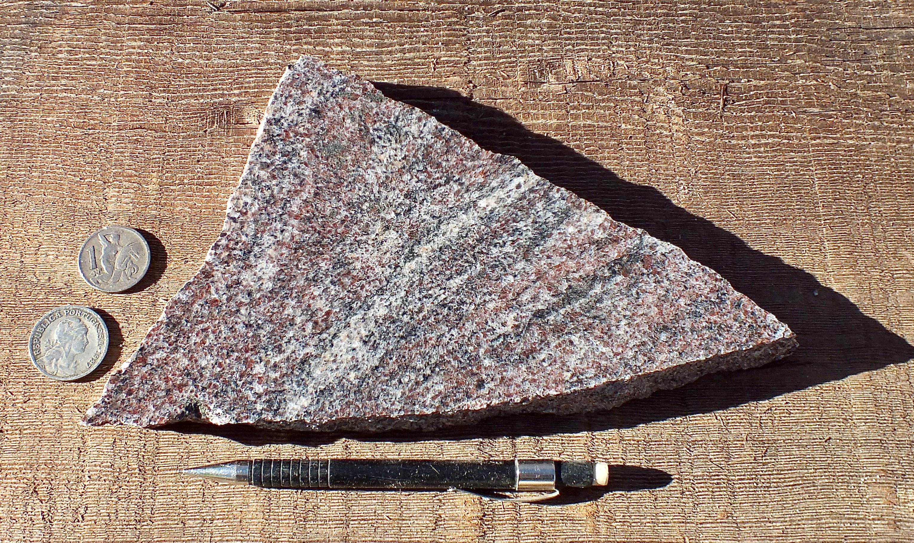 migmatite - a gneiss that has undergone partial melting, from a quarry in India - hand specimen