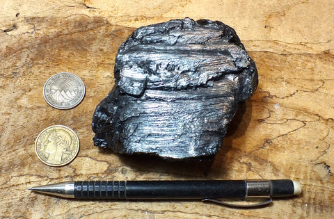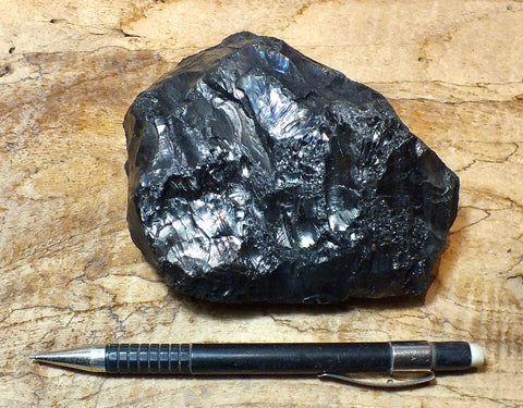 This anthracite was mined near Mt. Carmel, Columbia County, Pennsylvania, where Blaschak Coal Company has redeveloped the inactive former UAE Coal Corporation Associates Harmony Mine, field photo. It is from the Mammoth Coal bed, a unit of the lower Llewellyn Formation, upper Middle Pennsylvanian age. The Mammoth is the thickest anthracite bed in the entire world. It has been extensively mined throughout eastern Pennsylvania's anthracite coal fields.
